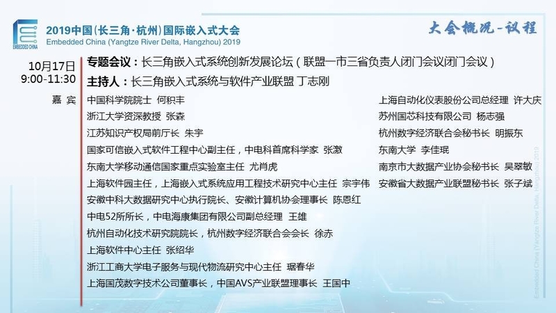 分论坛1:2019长三角嵌入式系统创新发展论坛(闭门会议) |